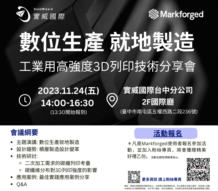 大受好評的 Markforged【工業用高強度列印機技術分享會】#實威國際智慧製造 特別舉辦台中場!