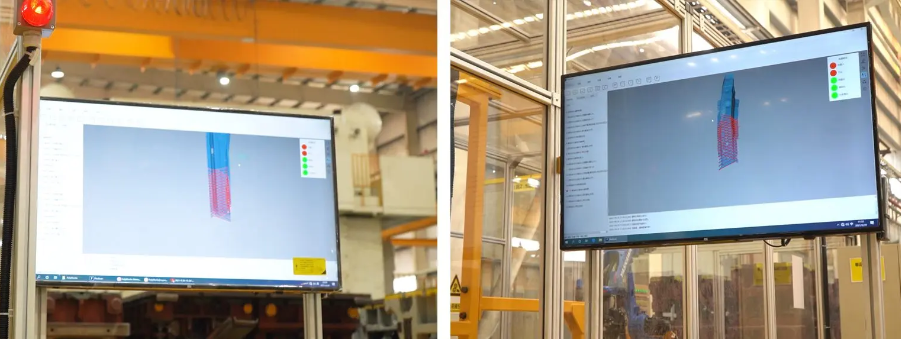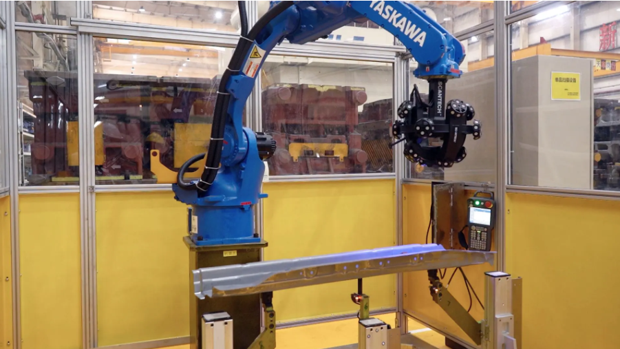 例如思看科技的AutoScan-T自動化3D偵測系統,在大量化偵測汽車沖壓鈑金零件時,能夠即時產生視覺化報告,若偵測到不合格的產品,系統會自動警報,對偵測人員的專業要求進一步降低。每次切換產品後,人工在觸控螢幕上選擇相對應的編號,軟體會自動搭配相對應的工件程式。偵測完成後,對應工件的資料會自動生成,無需人工再次除錯。可完全控制產品的生產(首-中-終)檢測,省人省時間省檢具。