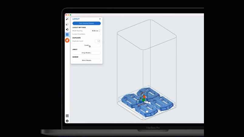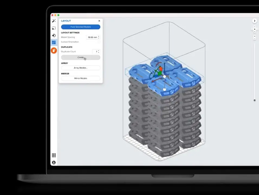 PreForm 的零件打包演算法可以在成型體積中自動排列多個模型,以最大限度地提高打包密度、縮短列印時間並減少浪費。