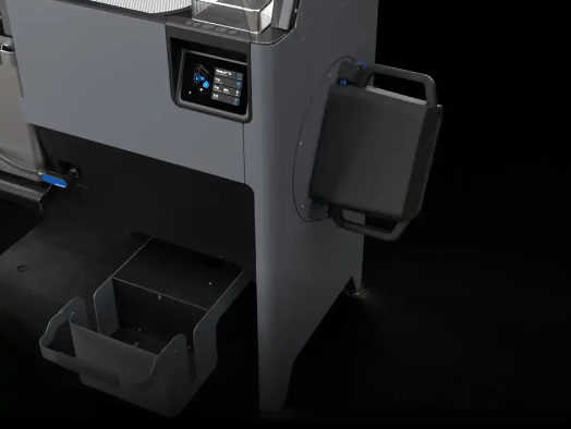 這套一體式工作台在單體設備中融合了零件取出、粉末回收、儲存和混合等功能。