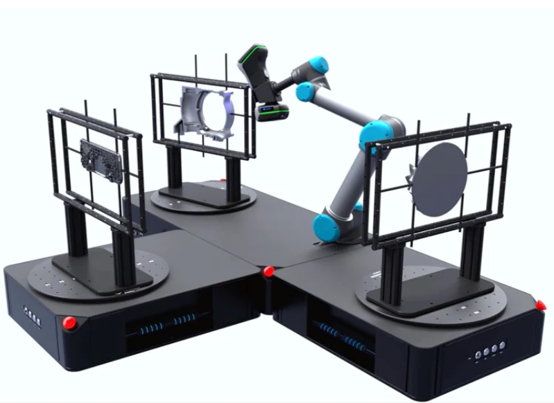 AM-DESK全能型自動化3D測量平台,由智慧控制系統、多個伺服運動機構、安全系統、運動控制軟體、測量分析軟體、SPC批量分析軟體構成,設計緊湊,輕鬆部署,可拓展性高。支援不同品牌型號協作機器人,可搭載SCANTECH全系列3D掃描儀,融入工廠車間、實驗室及其他高強度工作環境,應對不同零件的自動化檢測需求,維持高精度連續性3D測量。平台安全穩定,符合歐標CE認證要求,有多種安全防護硬件,保障安全作業。多樣化配件提供不同搭配可能性,可實現不間斷測量及各類特殊零件的自動化3D測量。SCANTECH自動化軟體FlexScan,介面簡潔,簡單易學,人機互動清晰明了;內建多種通訊模式,支援多種機器人,可根據現場不同佈局,適應多變位機的自動測量。